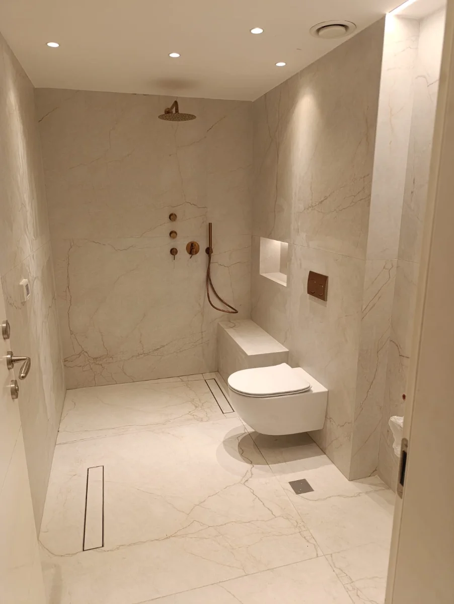 במקלחות מושם דגש מיוחד על איכות הריצוף והאיטום: משתמשים בדבקים וחומרי איטום מהטובים בשוק, מבצעים איטום תלת-שכבתי עם בדיקת הצפה לפי תקן, ומקפידים על עבודה מדויקת לקבלת תוצאה עמידה ואלגנטית.